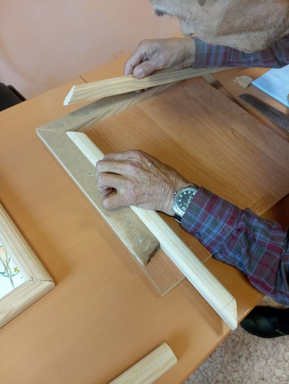 Одни мужчины любят готовить, другие находят радость в столярном деле. Так, например, Николай Николаевич с особым вдохновением создаёт деревянные изделия своими руками. В рамках кружка «Сделано руками» он мастерит рамки для картин. А эти картины, в свою очередь, пишут наши женщины — участницы кружка декоративно-прикладного творчества.