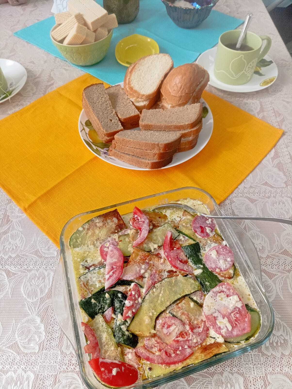 Очередное заседание было посвящено кабачкам, готовили «Закуску из кабачков с чесноком и помидорами». Но сначала распределили обязанности, кто – то резал и обжаривал кабачки, кто – то готовил соус, а кто – то нарезал помидоры. У каждого участника своя задача. В итоге получилось блюдо, наполнившее комнату непередаваемыми ароматами. И…… Вот долгожданный момент дегустации. Ну что может быть вкуснее блюда, приготовленного своими руками, да еще с душой и любовью?!