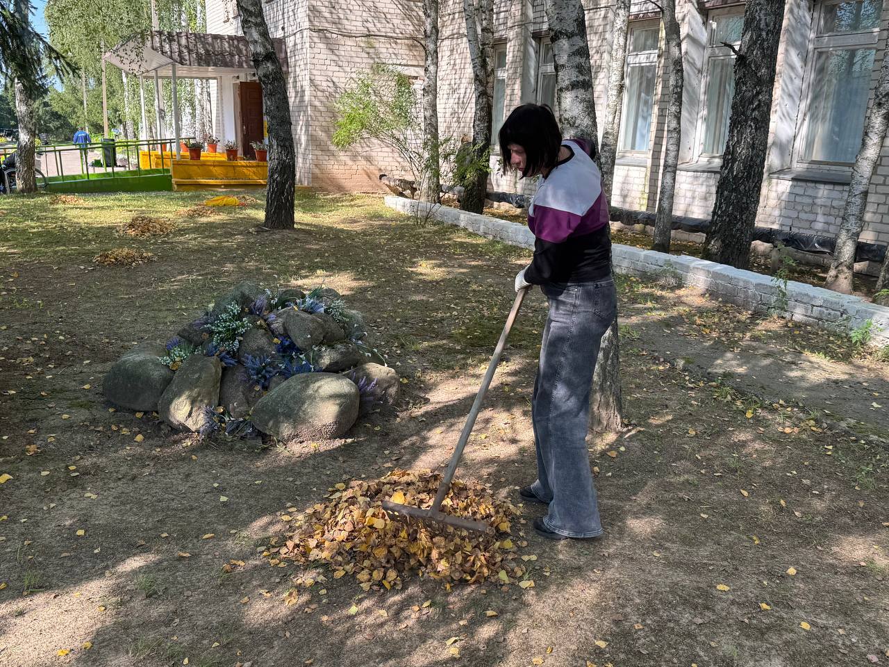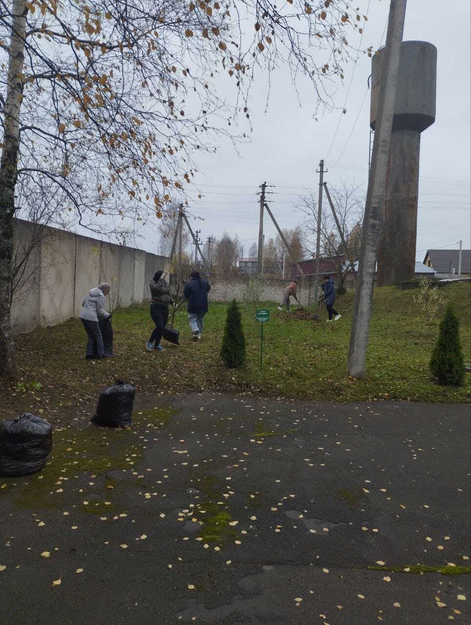 Сегодня дружно вышли на субботник и навели порядок на территории нашего дома. Убрали опавшую листву, обрезали отцветшие растения, убрали вазоны — теперь всё выглядит ухоженно и аккуратно.