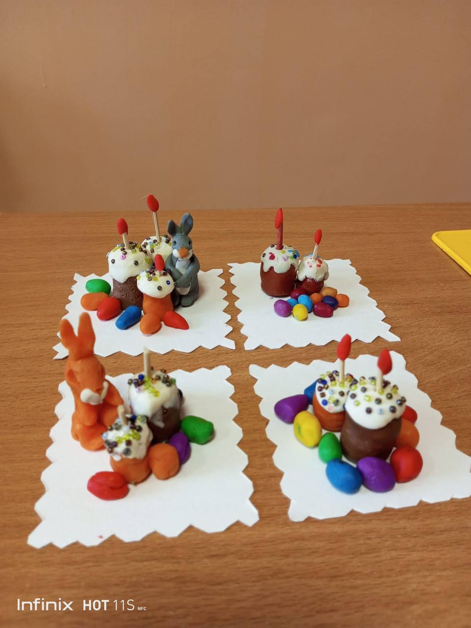 Декоративно-прикладное творчество или как мы "пекли" куличи из пластилина.