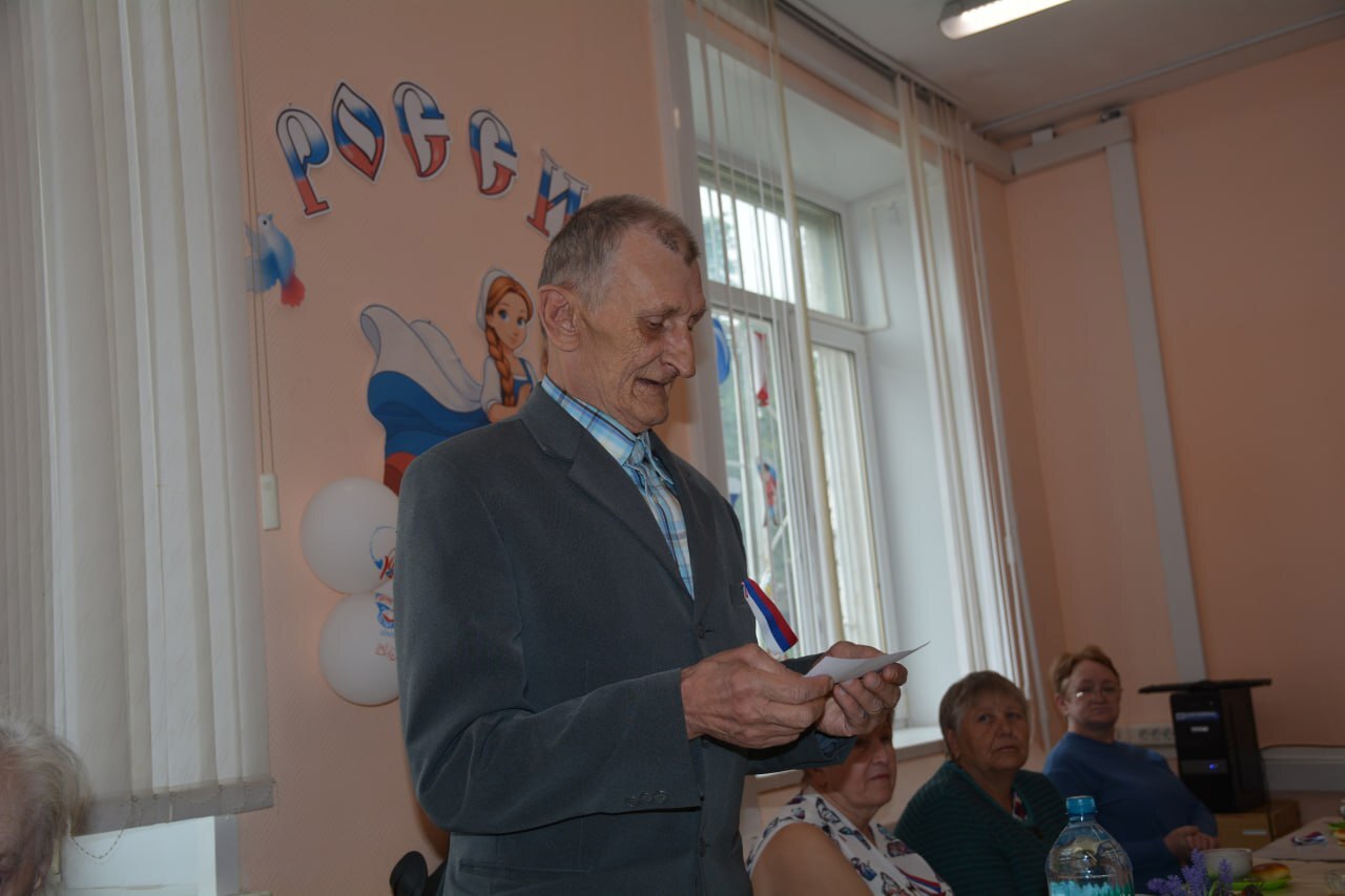 Накануне праздника, 11 июня в Центре общения старшего поколения, действующего на базе Кардымовского офиса клиентской службы социального фонда, состоялось мероприятие, посвященное Дню России, участниками которого, так же, стали проживающие активисты Кардымовского дома – интерната: Кулибаба Нина Константиновна, Дементьев Александр Георгиевич, Подрезова Светлана Николаевна.
