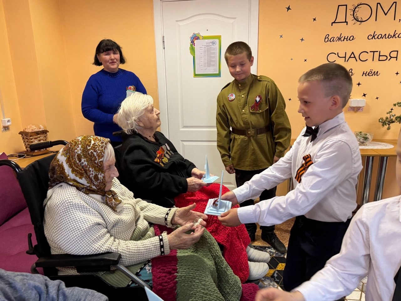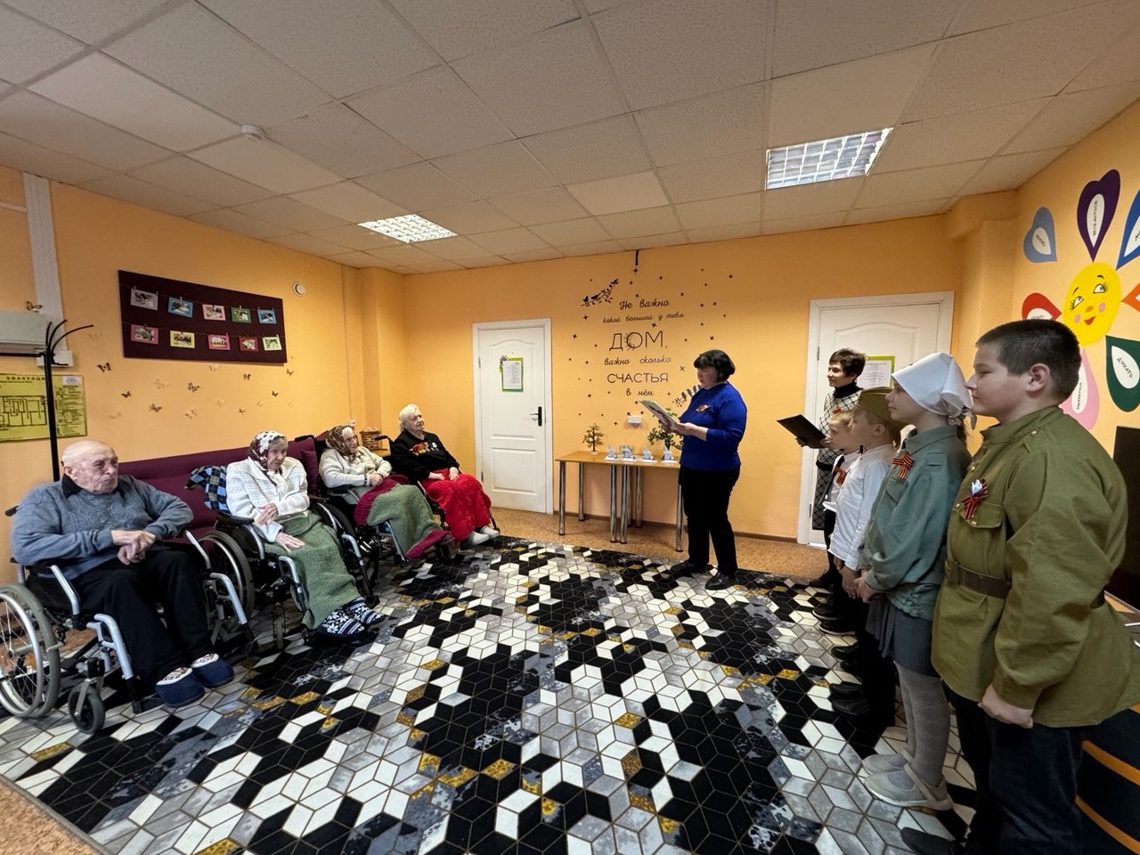 В рамках проекта связь поколений Кардымовский Центр Детского Творчества, а именно, творческое объединение «Маленькие актеры» в честь ветеранов Великой Отечественной Войны проживающих в нашем доме - интернате, участники подготовили и прочитали поздравительные стихотворения на тему Великой Победы.
