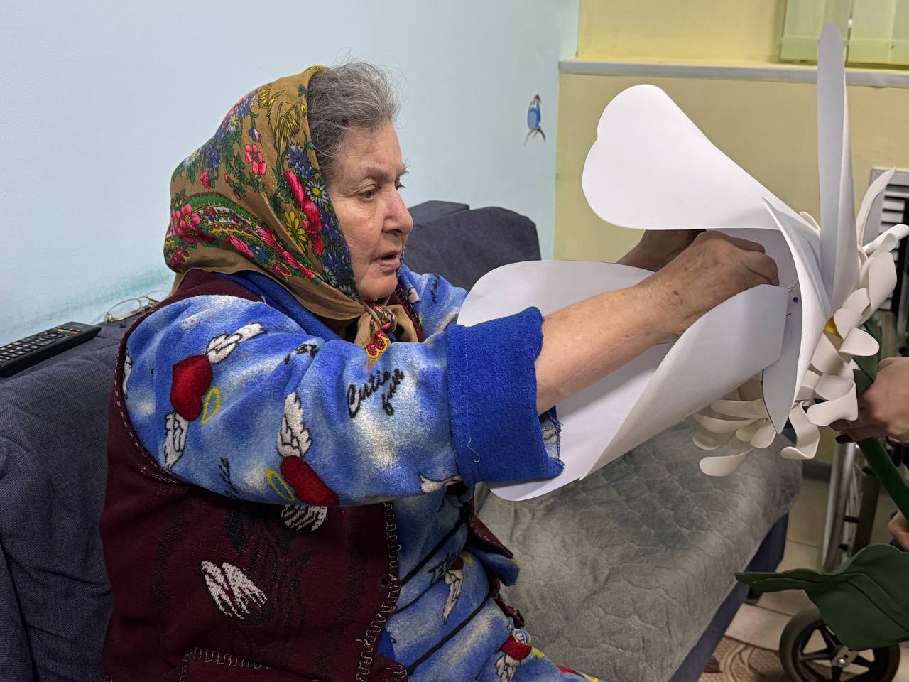 Каждый участник написал на своём лепестке тёплое пожелание всем жителям дома, создавая общий символ единства, взаимного уважения и заботы. Собранный из лепестков цветок стал отражением общей доброжелательности и стремления поддерживать друг друга.
