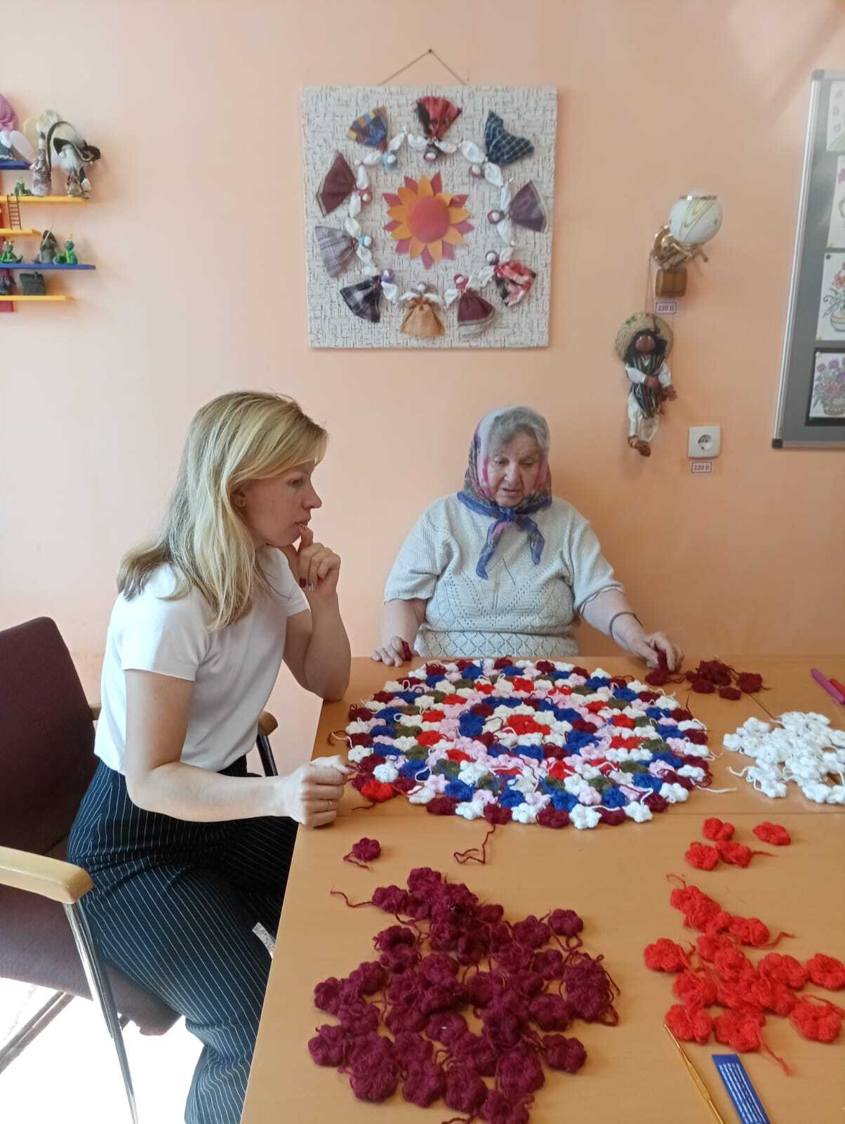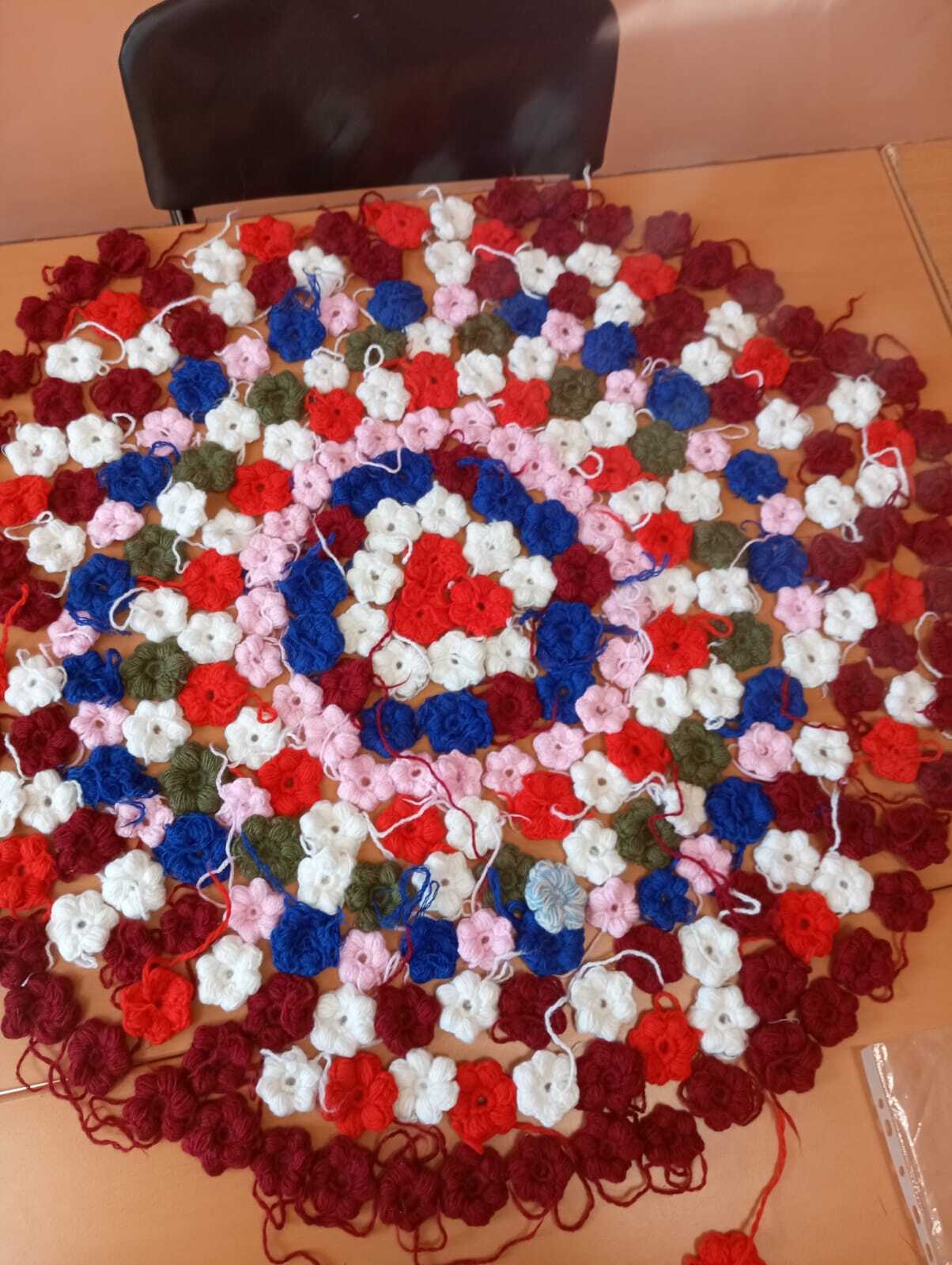 А мы продолжаем удивлять вас нашим творчеством и задумались, как нам соединить связанные элементы - цветы, воедино. То ли сшить, то ли связать, а может использовать декоративные элементы?