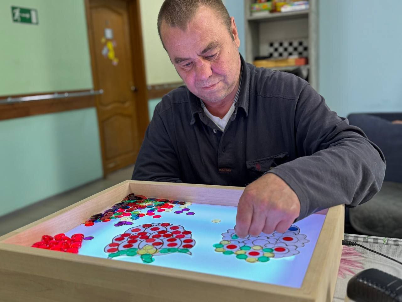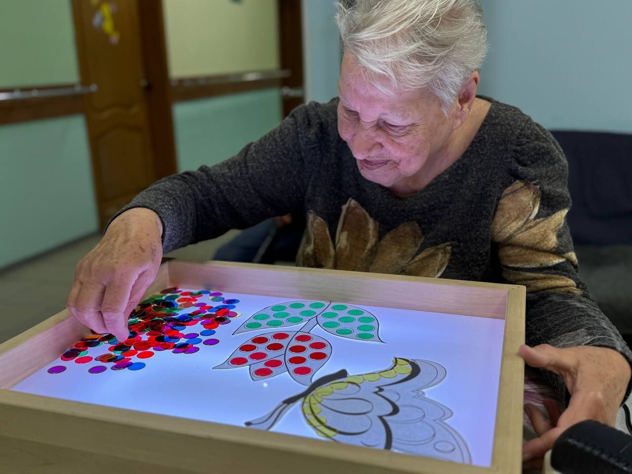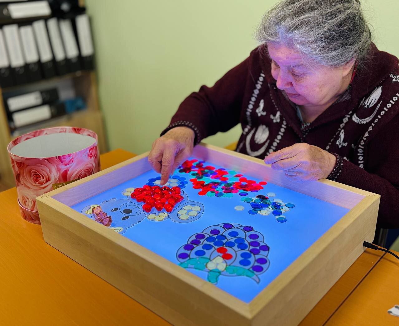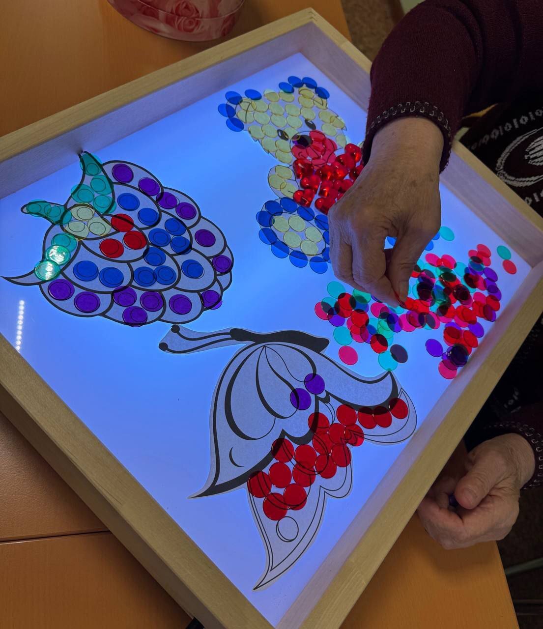 Использование светового стола показывает, что он позитивно влияет на эмоциональное самочувствие наших проживающих.
